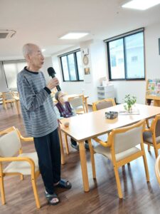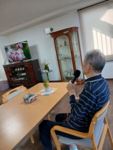 カラオケ大会開催する。どの入居者様も昔懐かしい歌をたくさん歌われる。