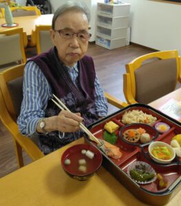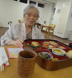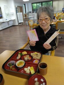 昼食は卵豆腐、紅白なます、手まり麩とはんぺんのお吸い物、秋茄子の揚げ浸し、