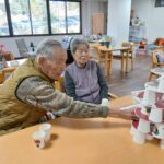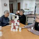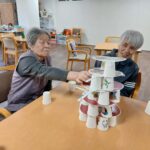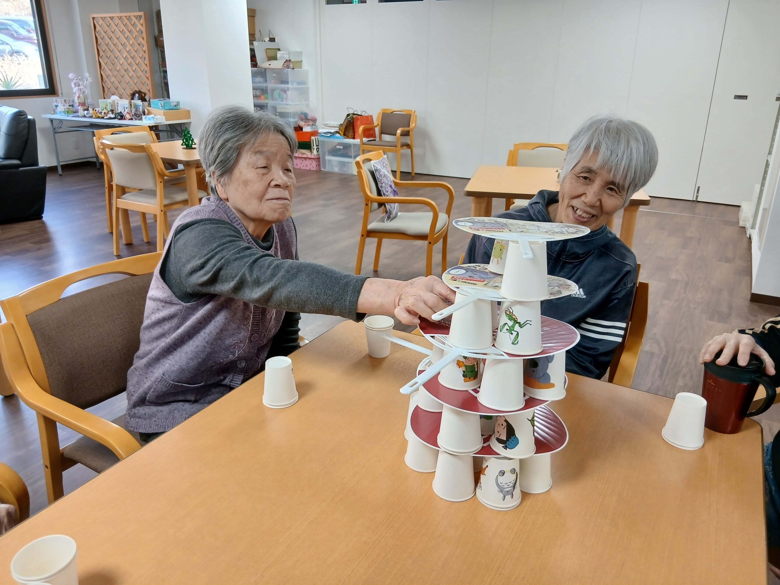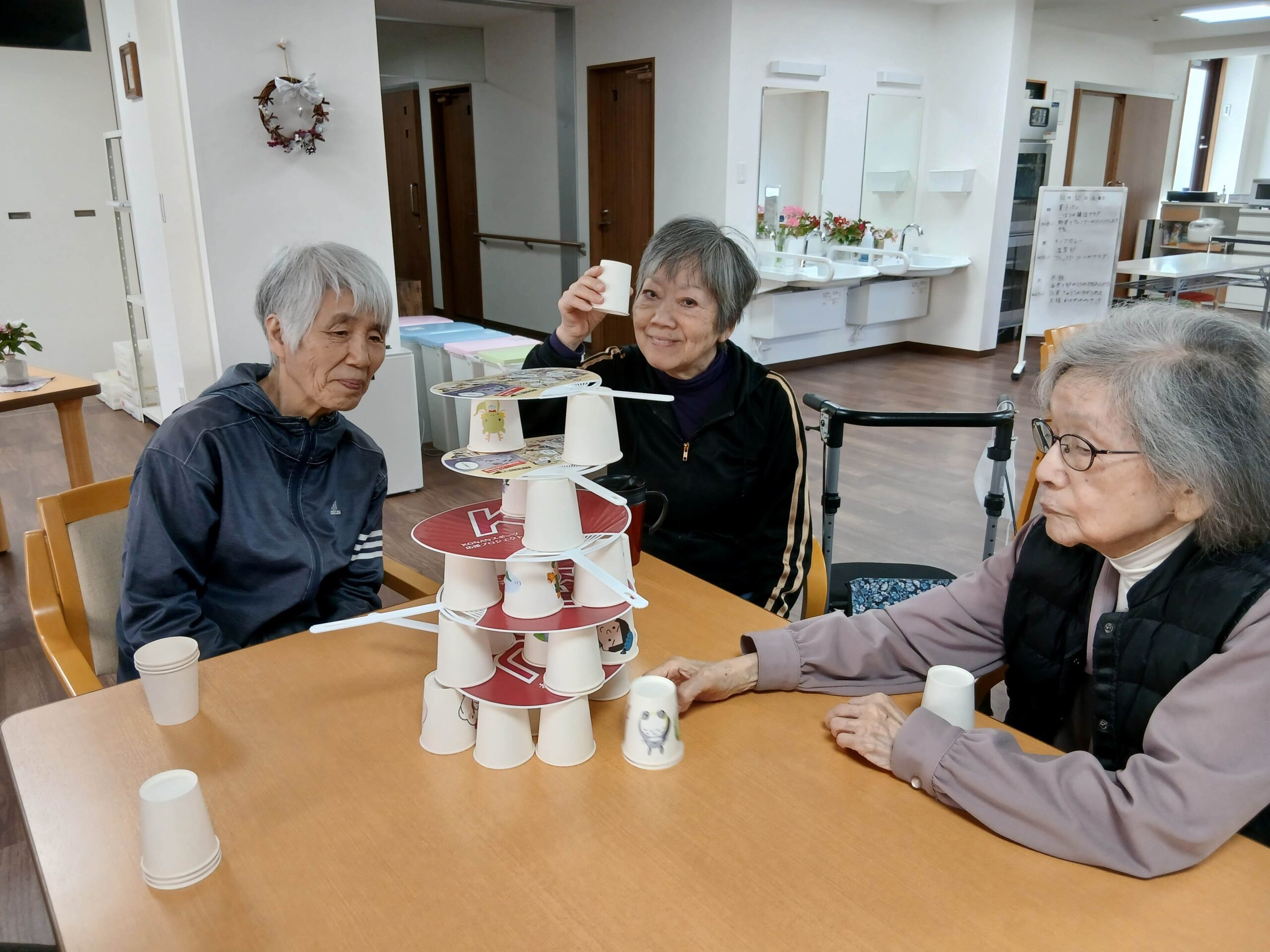 紙コップを積み上げて一つずつコップを取っていくゲーム。