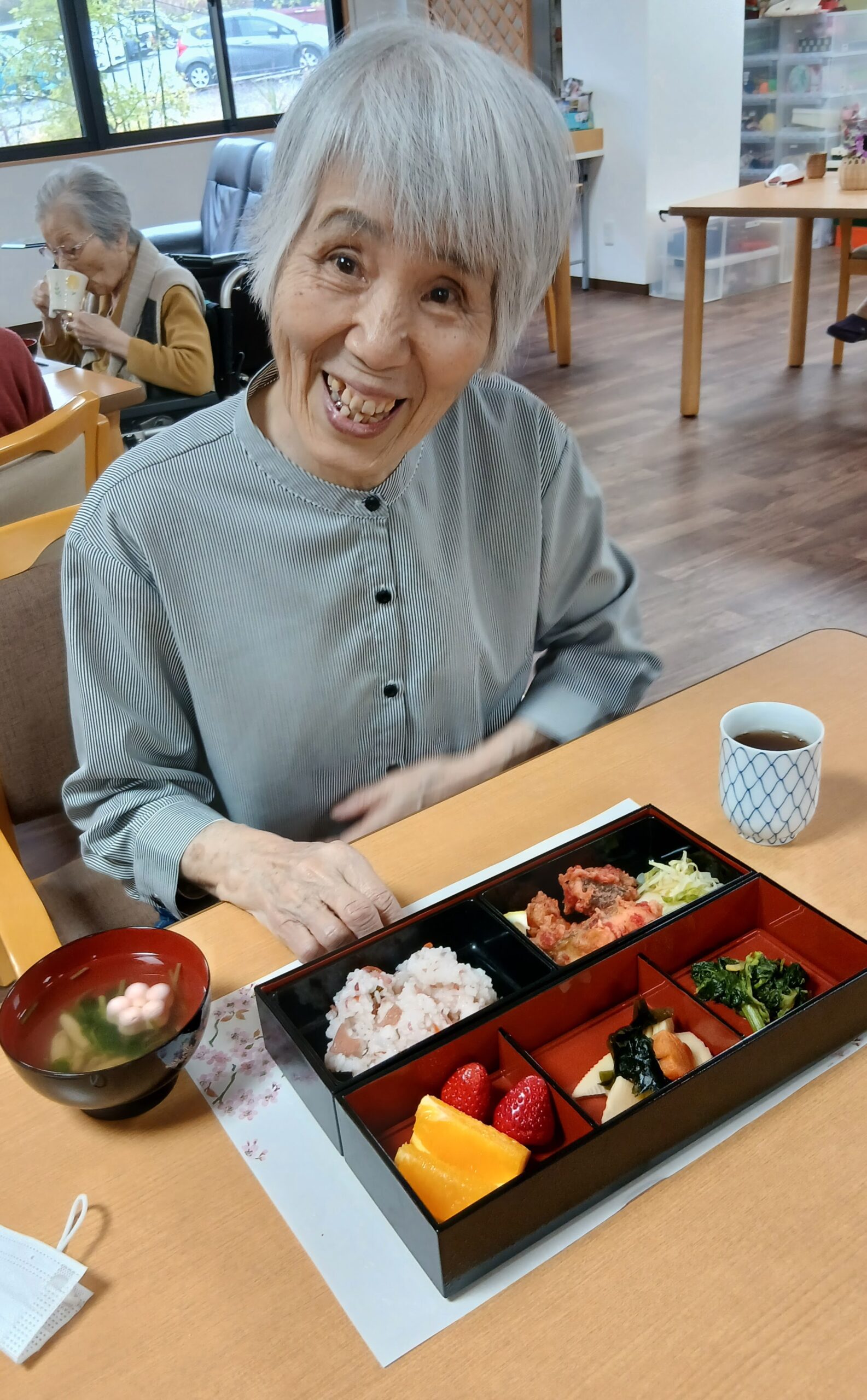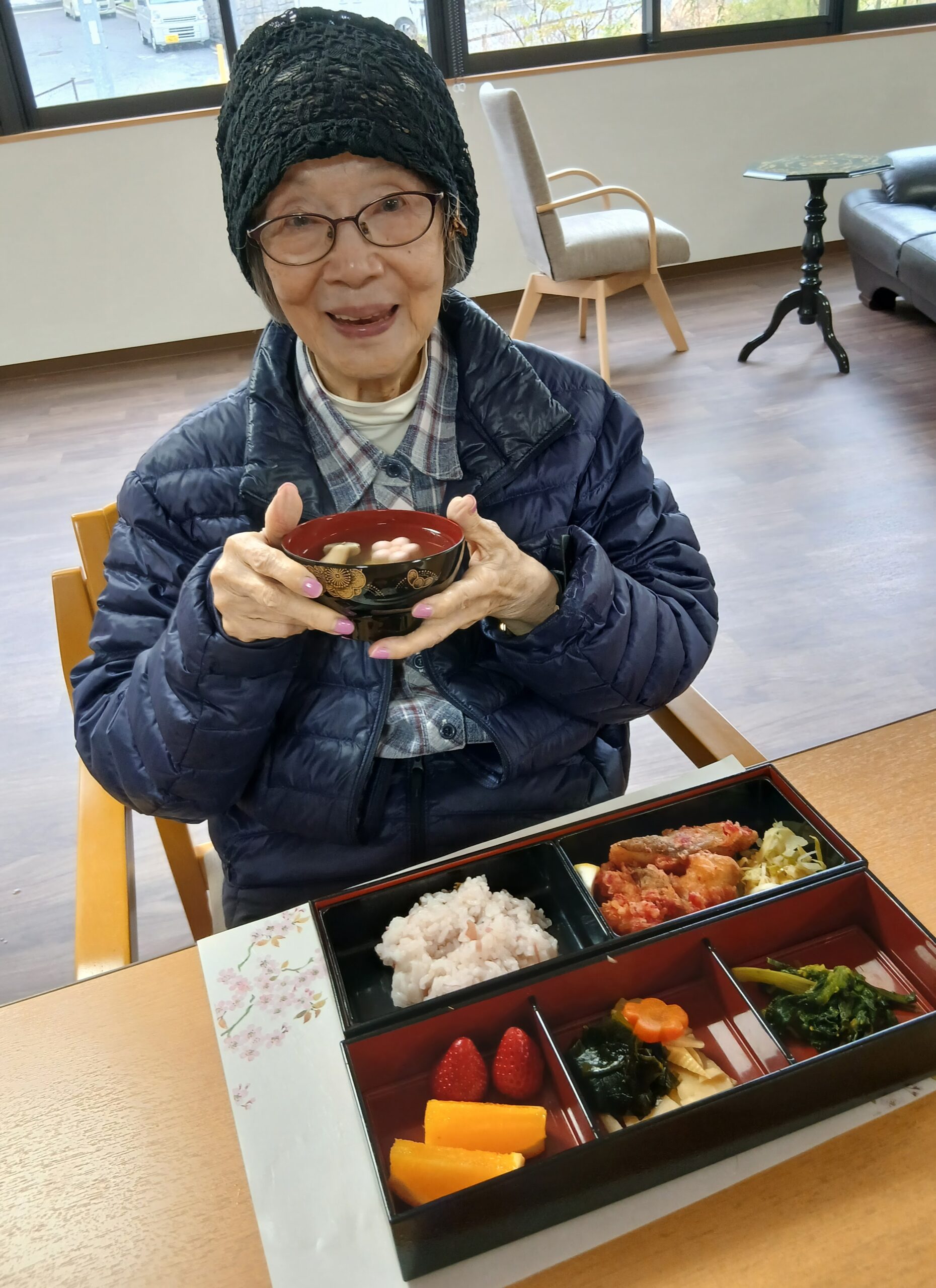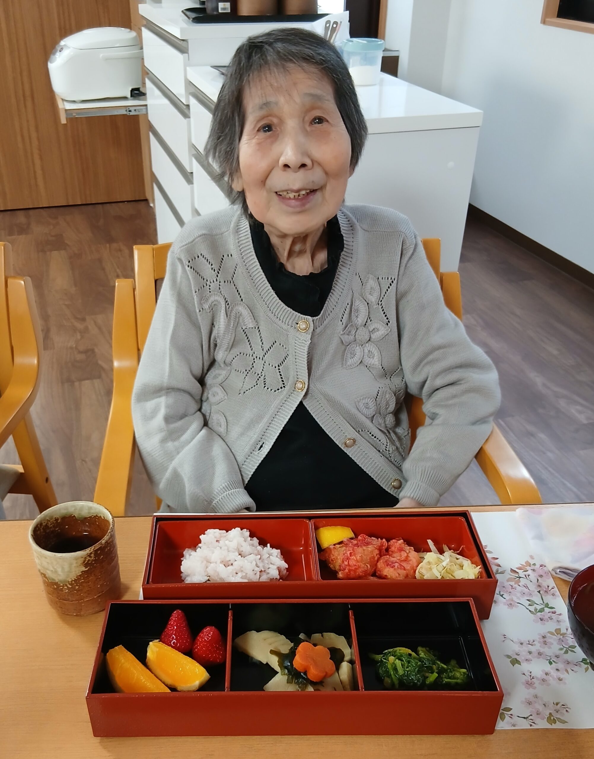 昼食に花見弁当が出ました。