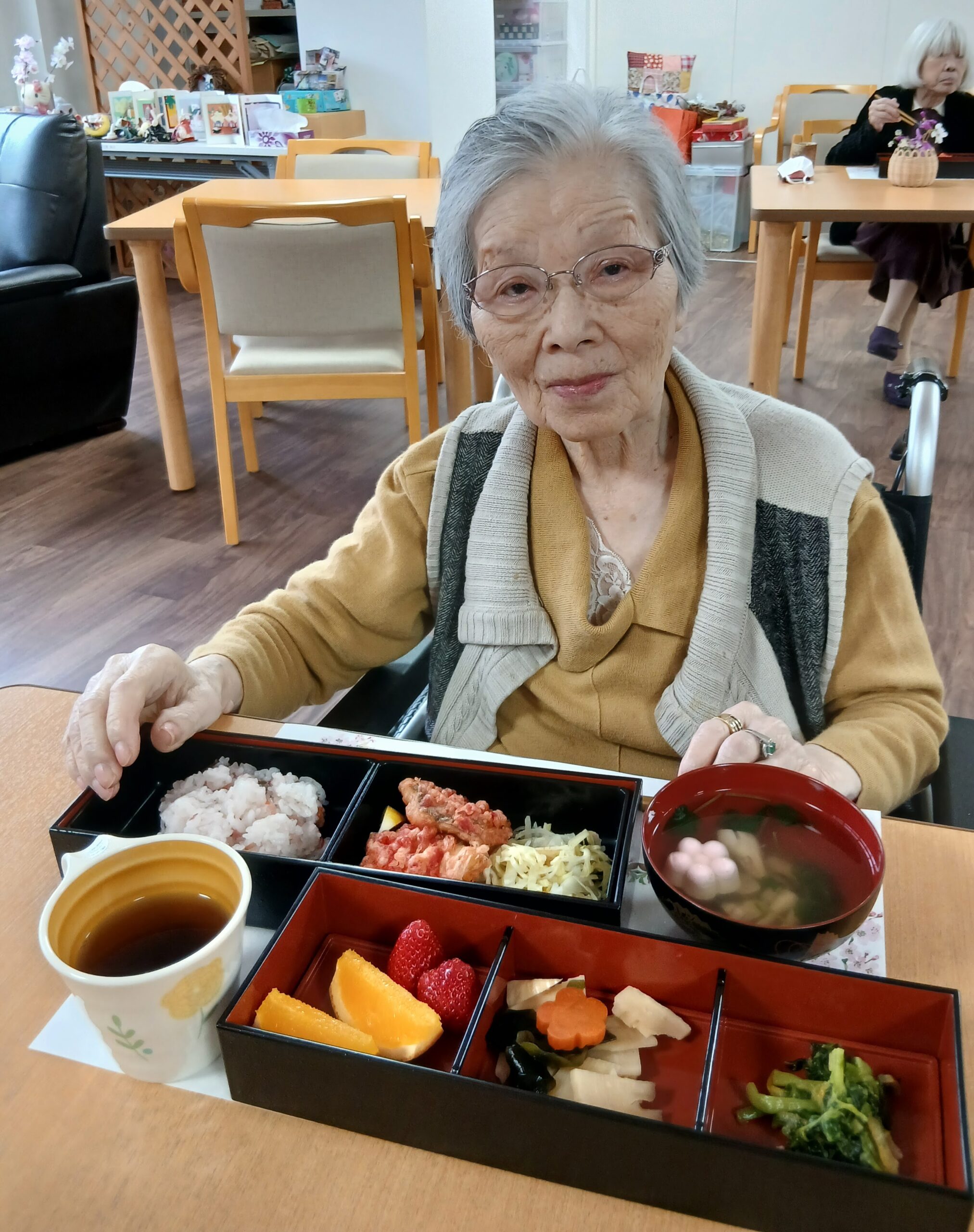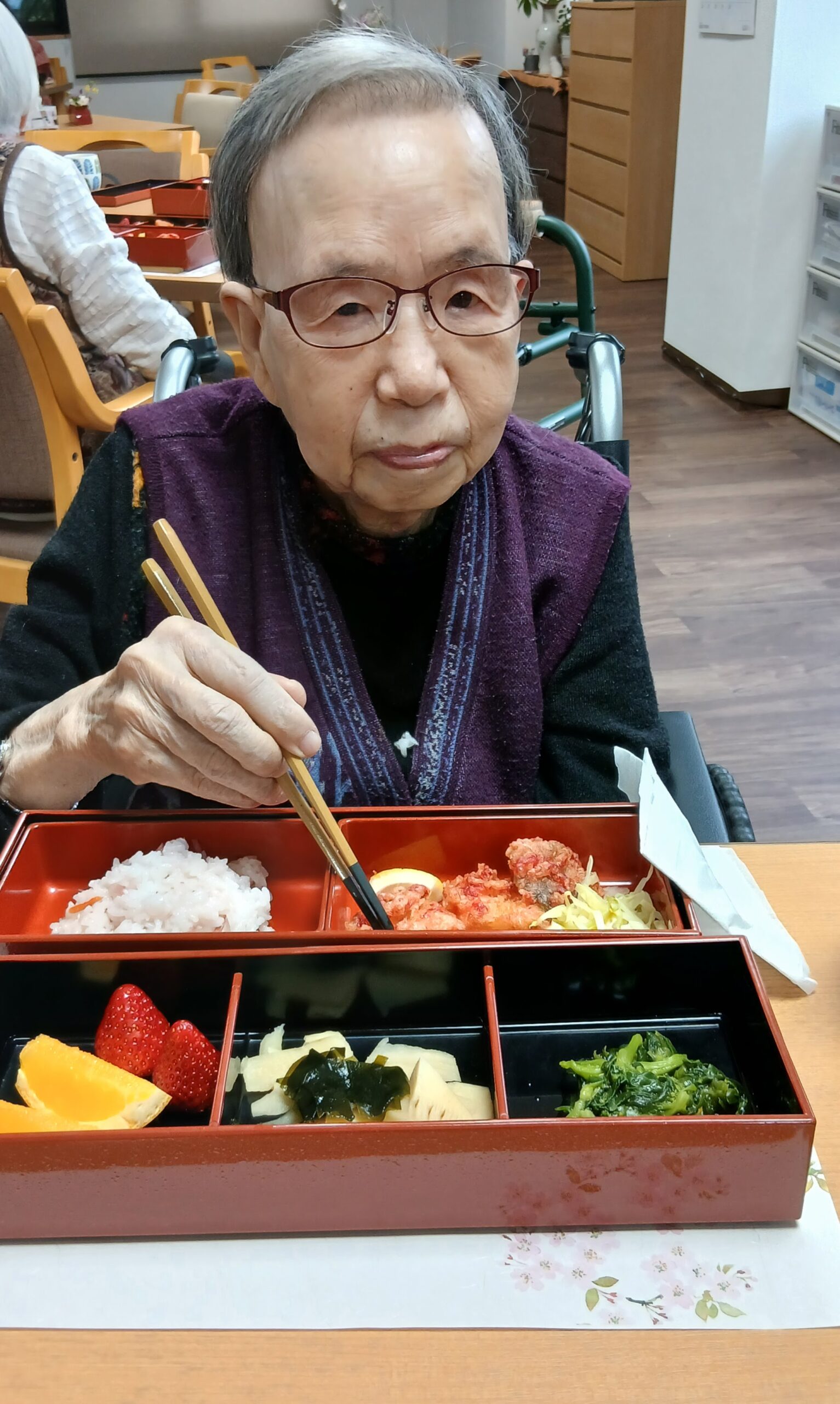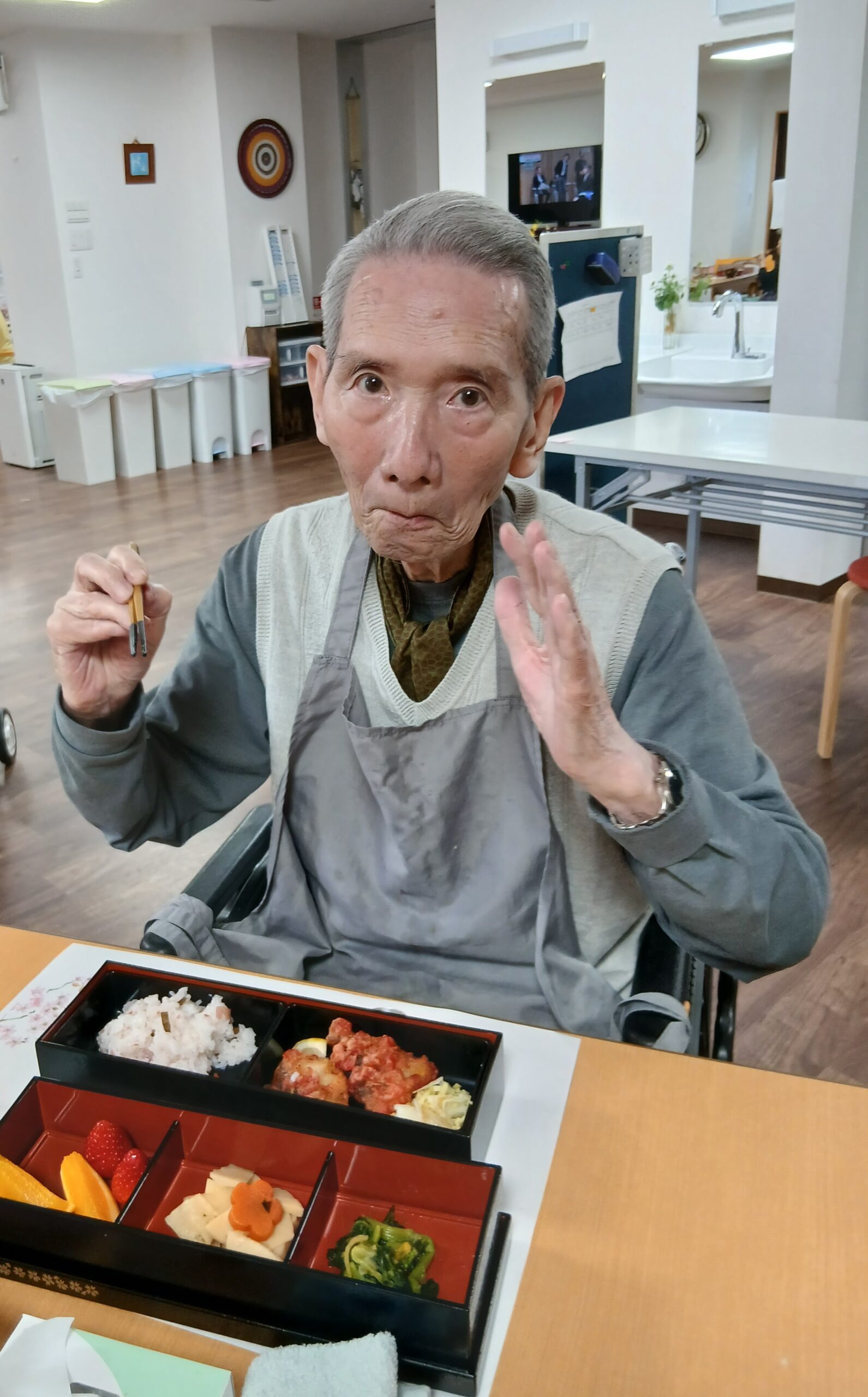 昼食に花見弁当が出ました。